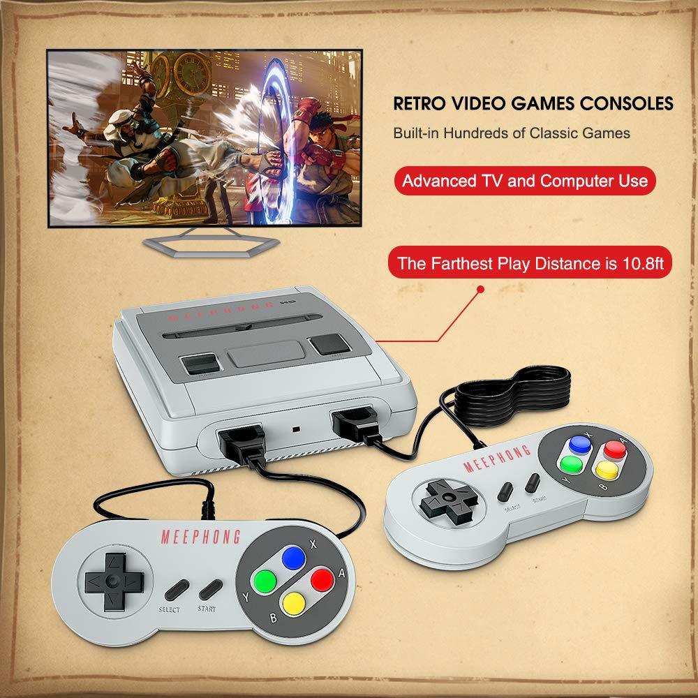 - ✅【PROMOTE PARENT-CHILD COMMINUCATION】: Can't find a topic to communicate with your child? MEEPHONG super nes classic game consoles let your children experience the experience and happiness of your growth, and promote your communication and feelings with your children. Equipped with 2 sensitive joysticks, plug and play, hand feels comfortable, better share your fun with family and friends.