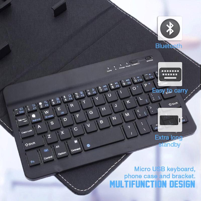 - Multifunction design: Micro USB keyboard, phone case, and bracket.