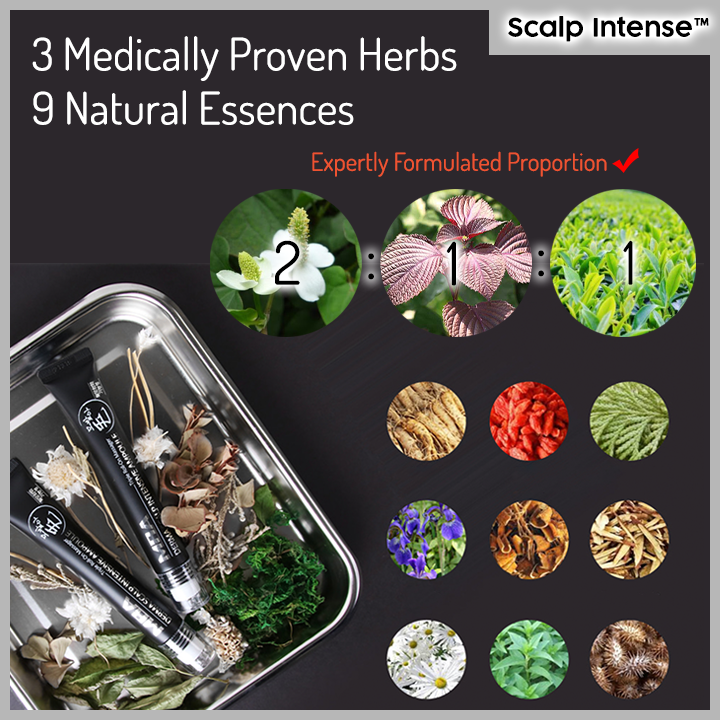 According to the research done by BMC Complementary Altern. Med.**, the supreme blend of Houttuynia Cordata, Perilla Frutescens & Green Tea is an effective herbal complex to treat alopecia in a special formula of 2:1:1.